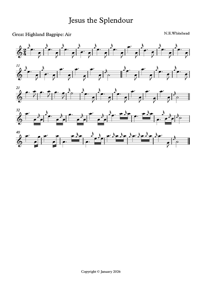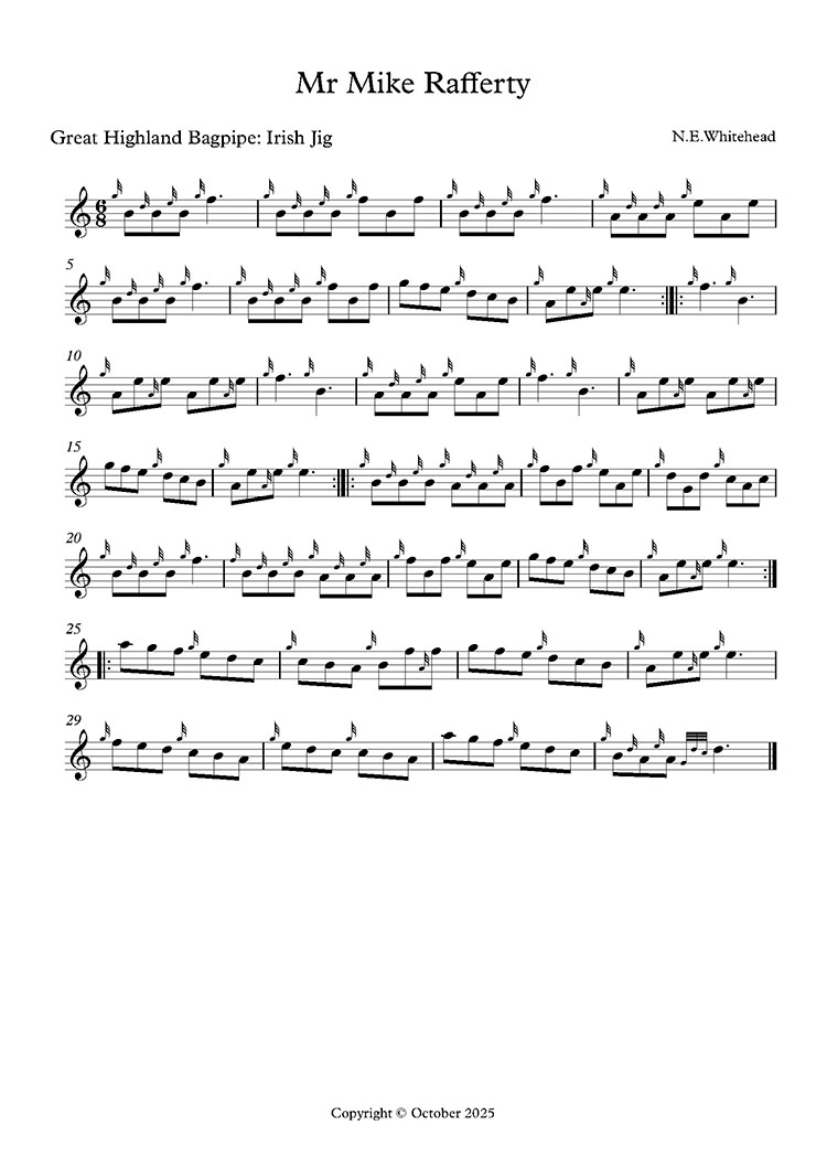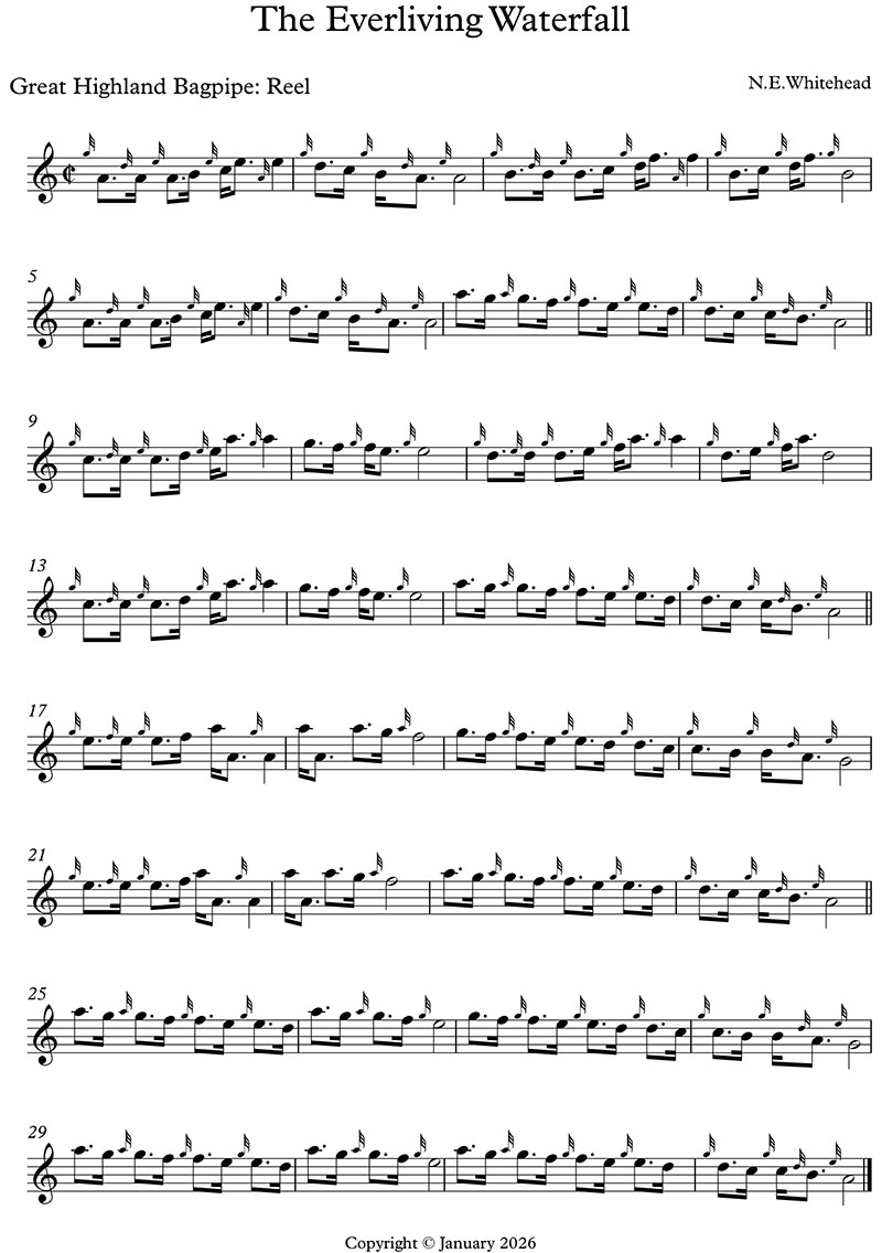 The music on this website can be played online and is also downloadable. The manuscript music can be downloaded as a printable pdf. All these tunes are original, and have creative commons licences. They can be freely used with attribution to Neil Whitehead, piper, New Zealand.